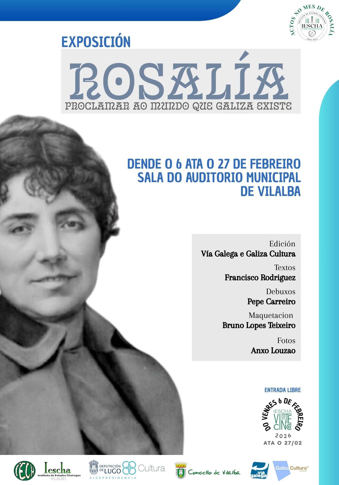 O acto central do Día de Rosalía de Castro terá lugar o domingo 22 de febreiro, ás 12:00 horas, no Panteón de Galegos Ilustres (San Domingos de Bonaval), en Santiago de Compostela. A entrada será libre e gratuíta.