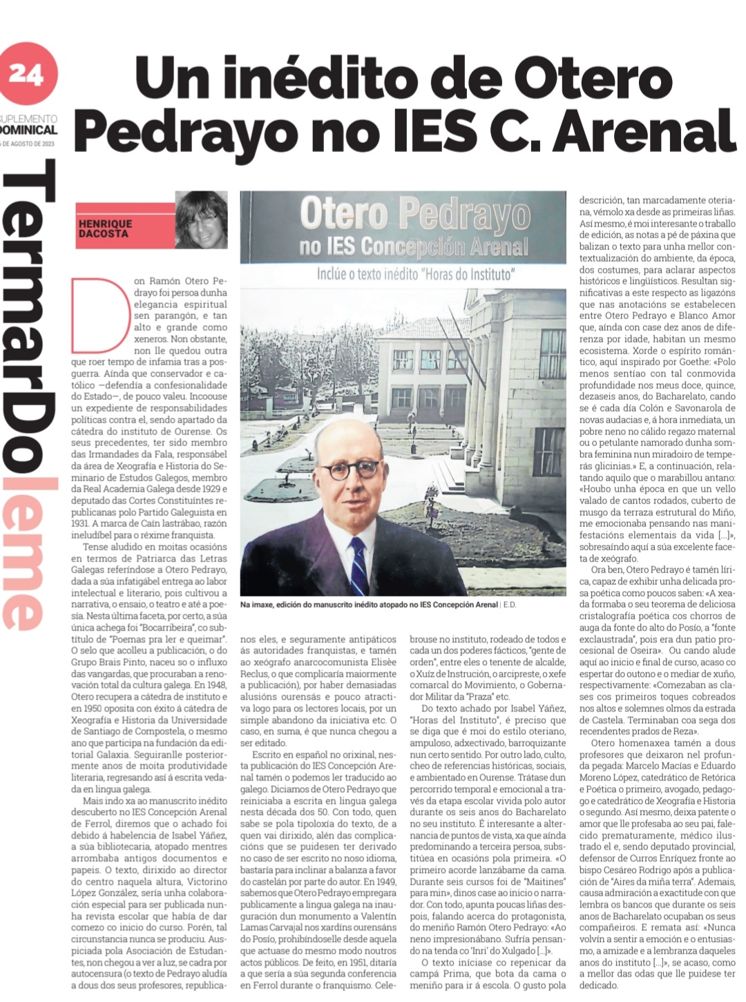Un inédito de Otero Pedrayo no IES C. Arenal